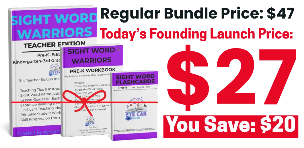 The first step is to download your copy of the Sight Word Warriors Pre-K Bundle. Act now, and you can take advantage of a Founding Launch Special Discount to save off the regular price.